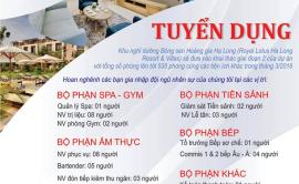 Royal Lotus Ha Long Resort & Villas tuyển dụng các vị trí lễ tân, bartender, bếp.Royal Lotus Ha Long Resort & Villas