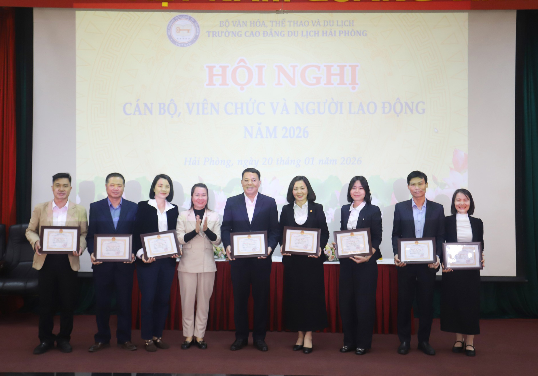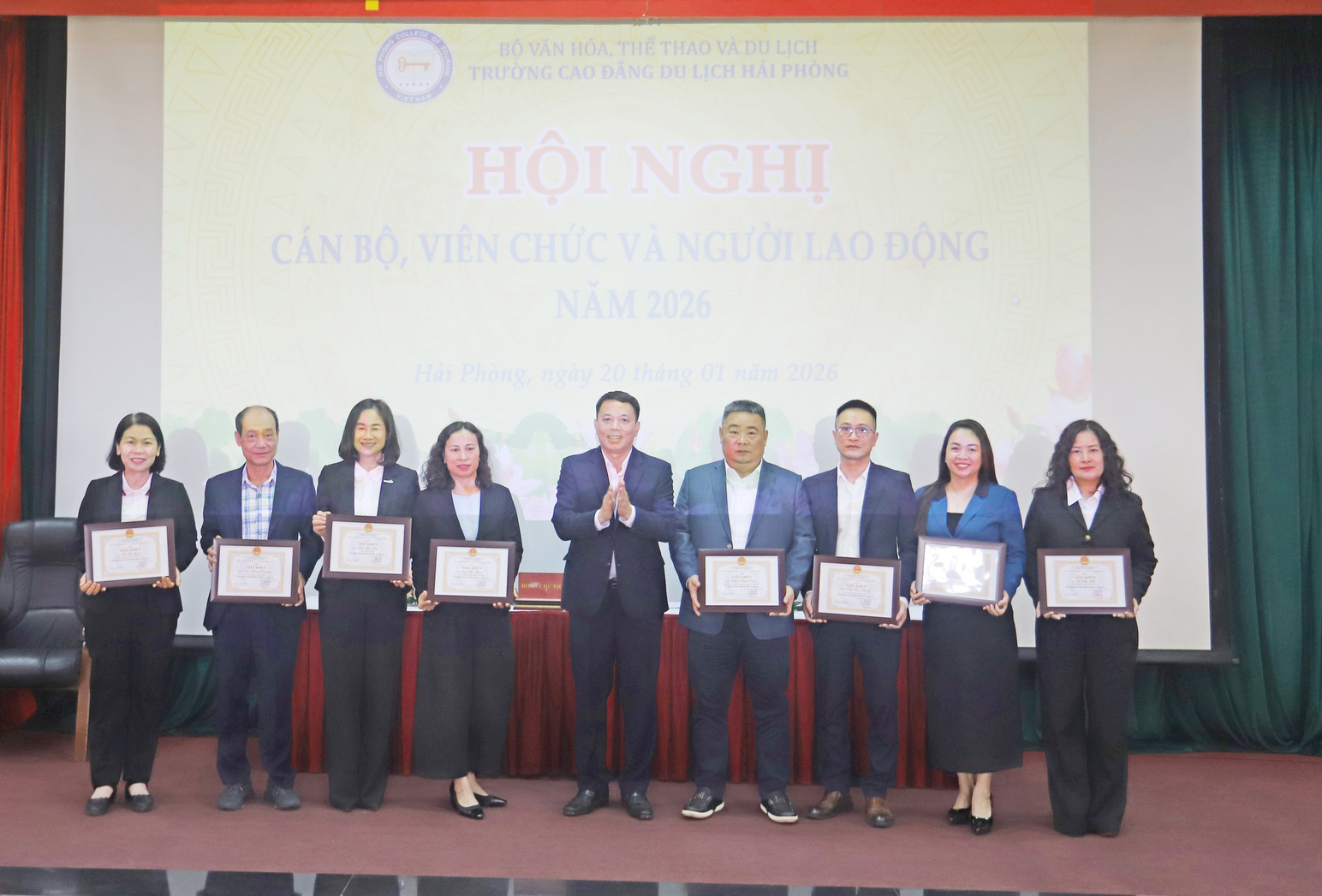 Sáng ngày 20/01/2026, tại Hội trường Trường Cao đẳng Du lịch Hải Phòng, Hội nghị cán bộ, viên chức, người lao động năm 2026 đã được tổ chức trang trọng với sự tham dự của toàn thể cán bộ, viên chức và người lao động trong toàn trường.