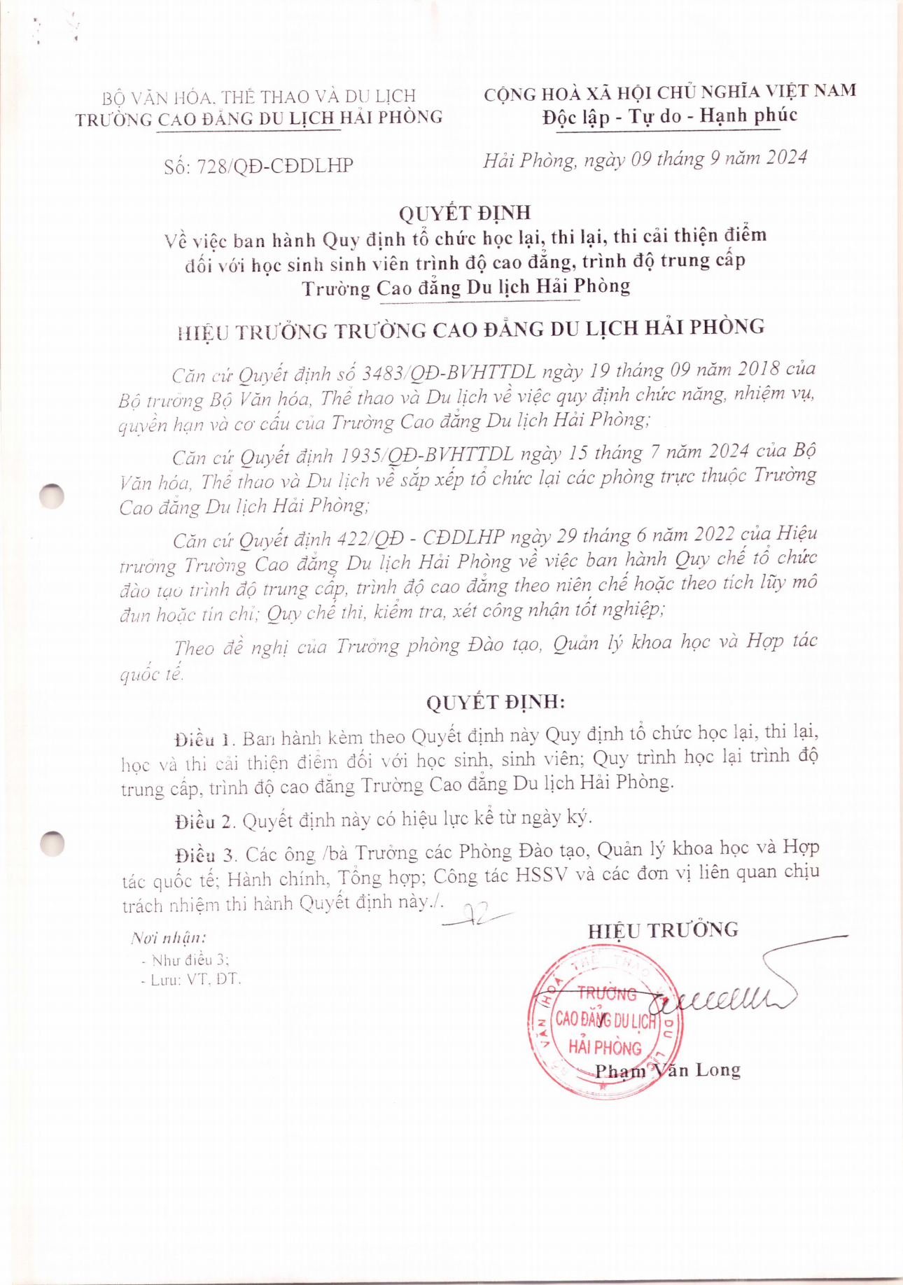 Quy định về việc tổ chức thi lại, học lại, thi cải thiện điểm đối với HSSV trình độ Cao đẳng, Trung cấp