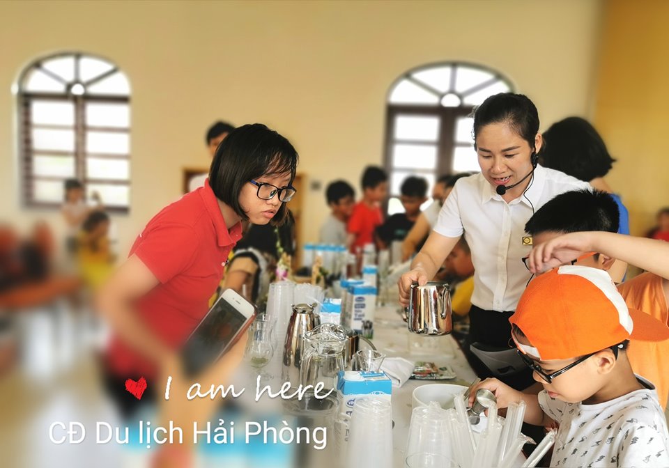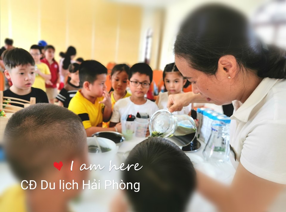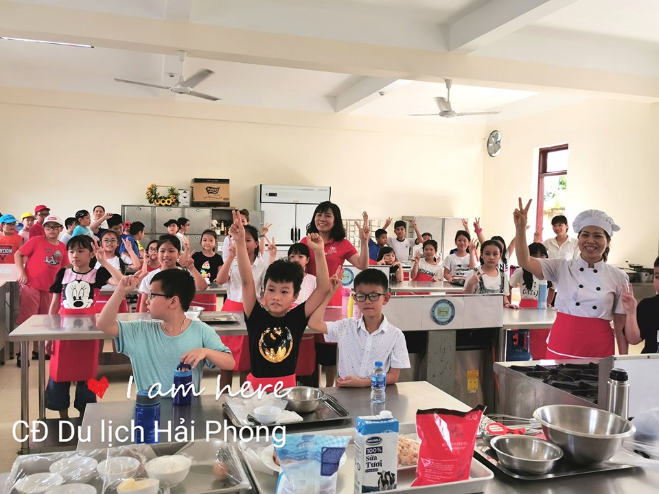 Các bé tham gia trải nghiệm tại Trung tâm thực hành nhà hàng trường Cao đẳng Du lịch Hải Phòng