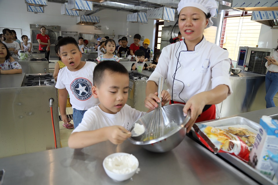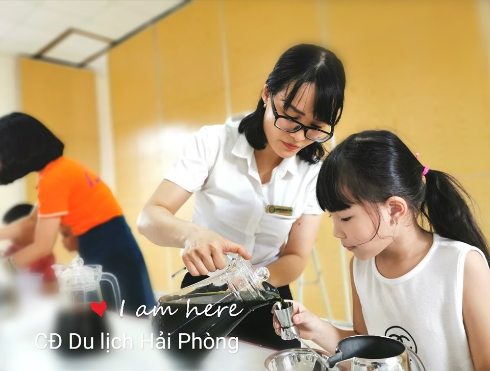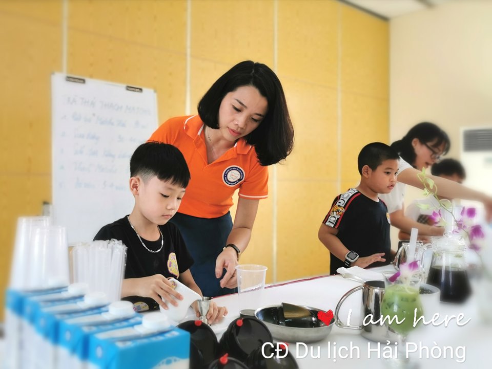 Các bé được thăm quan trường, tham gia vào các hoạt động trải nghiệm công việc của MasterCheft và Batender tại Trung tâm thực hành bếp, nhà hàng trường Cao đẳng Du lịch Hải Phòng.