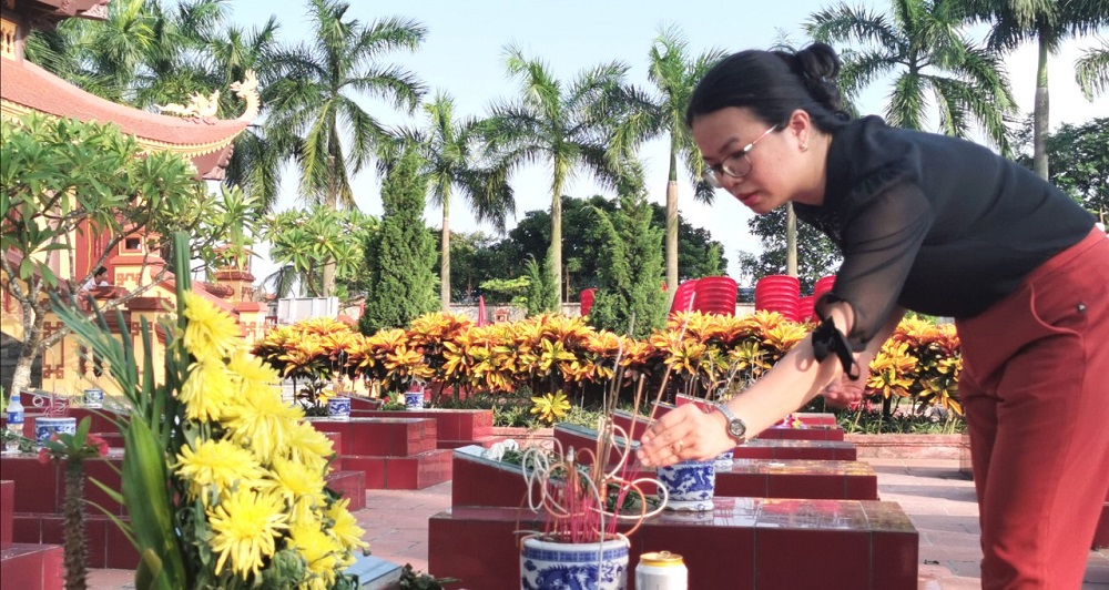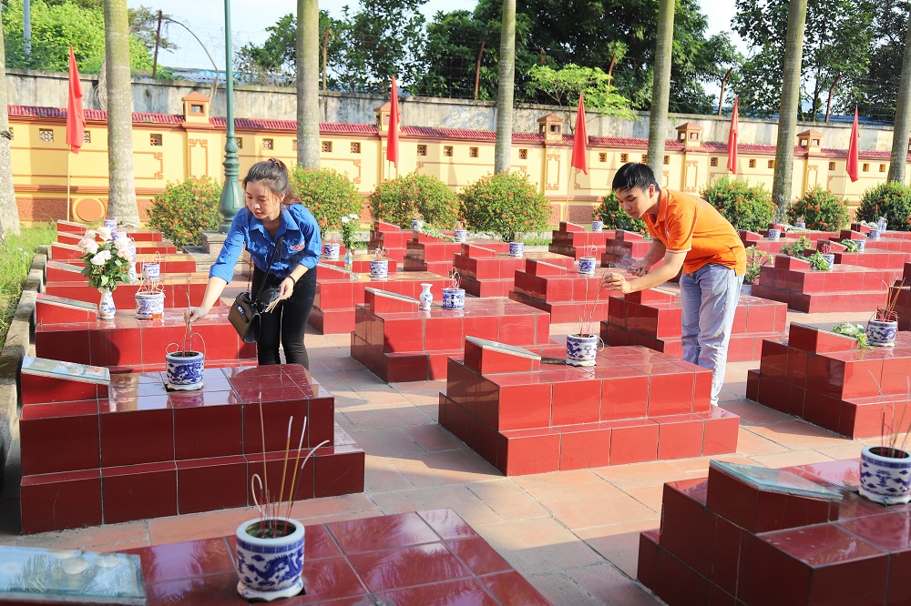 Đoàn đã tổ chức lễ dâng hương và thắp nến tri ân tại nghĩa trang và khu tưởng niệm Anh linh các Anh hùng liệt sĩ xã Nan Sơn, huyện An Dương để tưởng nhớ công lao của các anh hùng liệt sĩ.