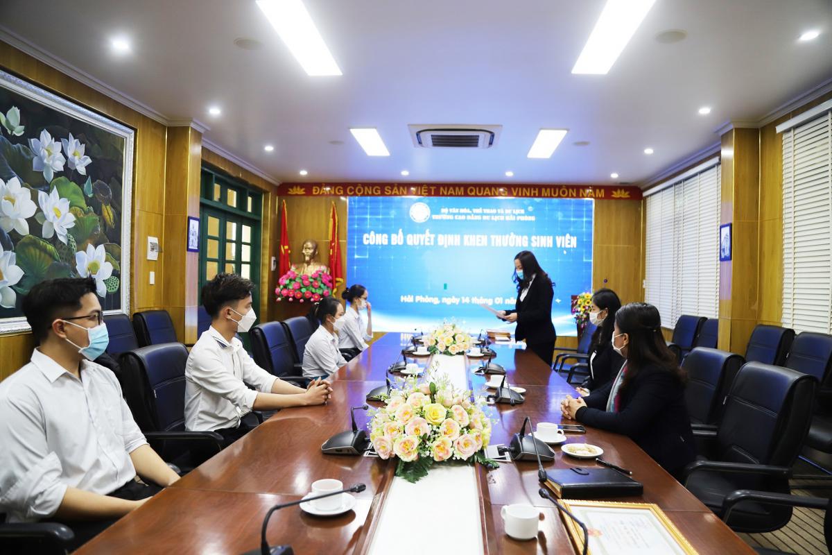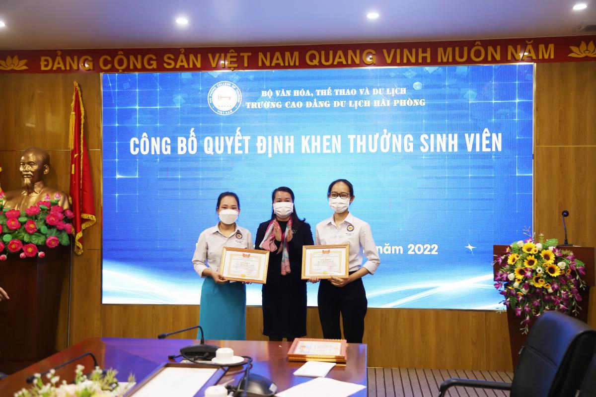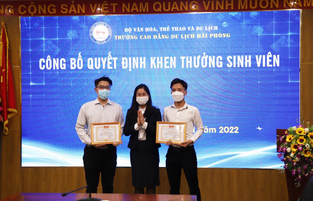 Với tinh thần biểu dương, khen thưởng và tạo động lực thúc đẩy sự rèn luyện, phấn đấu của học sinh, sinh viên trong toàn trường, ngày 13/01/2022 Trường Cao đẳng Du lịch Hải Phòng đã tổ chức công bố quyết định khen thưởng cho 04 sinh viên 02 lớp Cao đẳng quản trị khách sạn quốc tế và Cao đẳng kỹ thuật chế biến món ăn quốc tế.