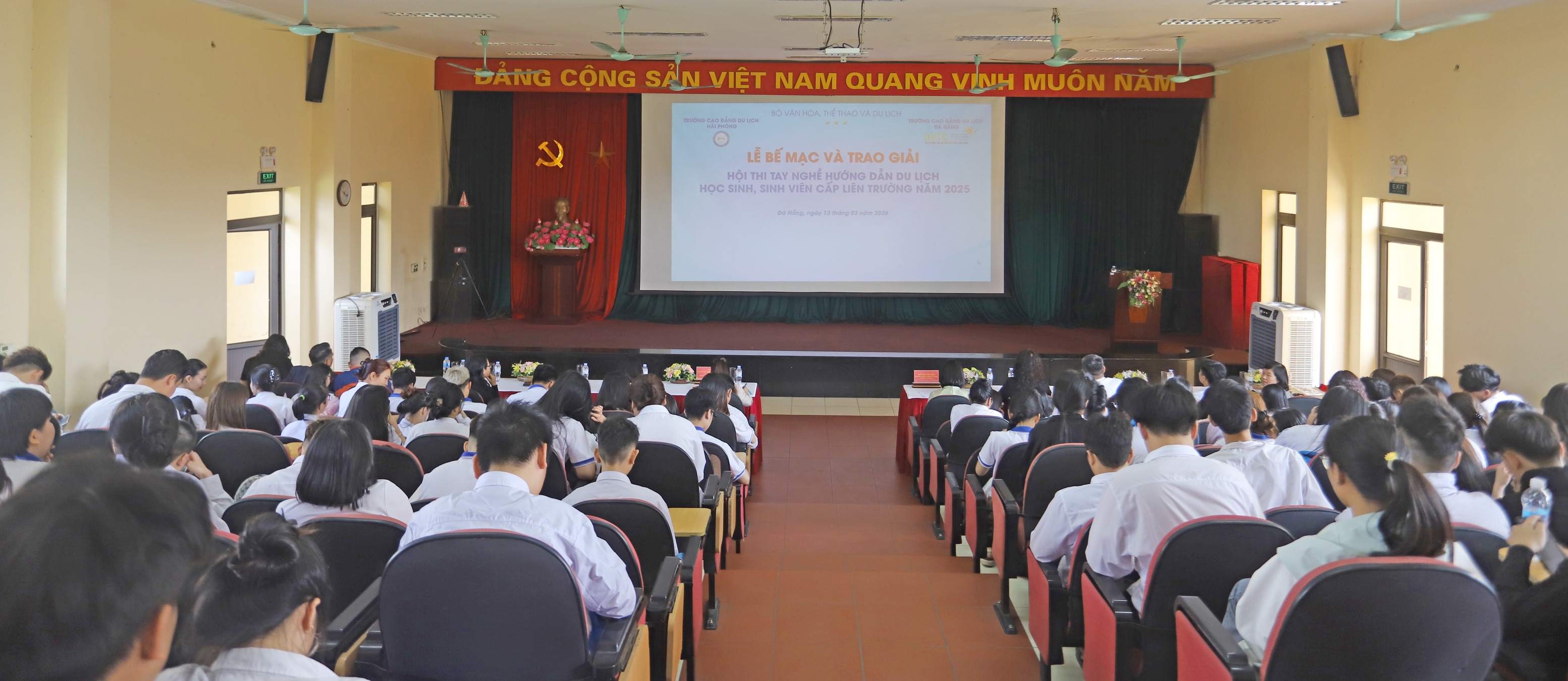 Toàn cảnh Lễ Bế mạc và Trao giải Hội thi Tay nghề Hướng dẫn Du lịch HSSV cấp liên trường 2025
