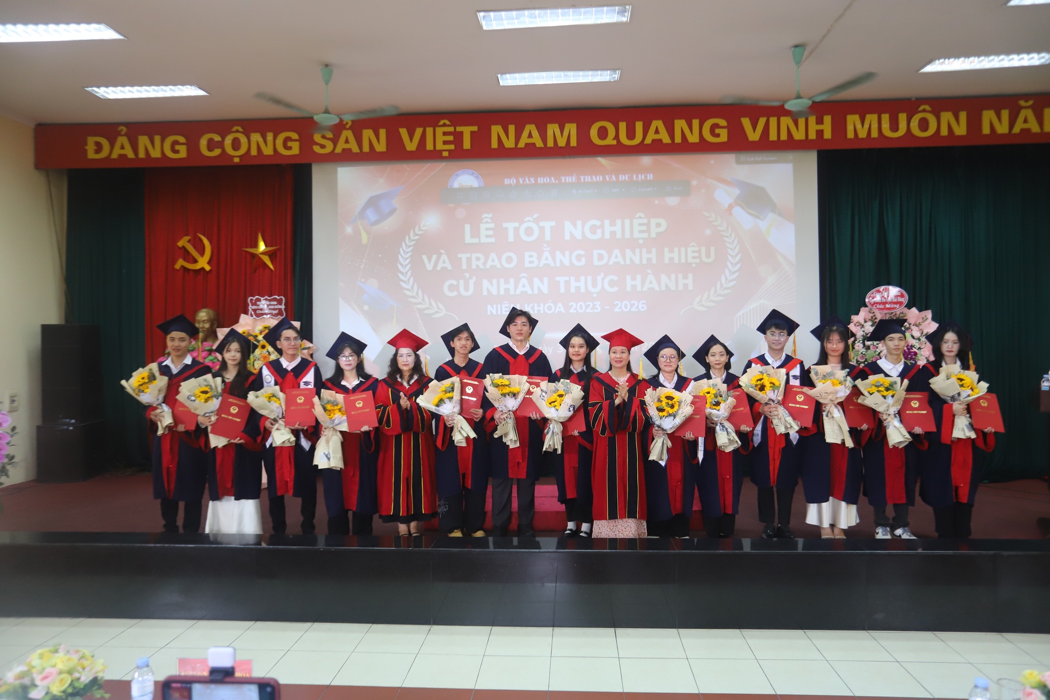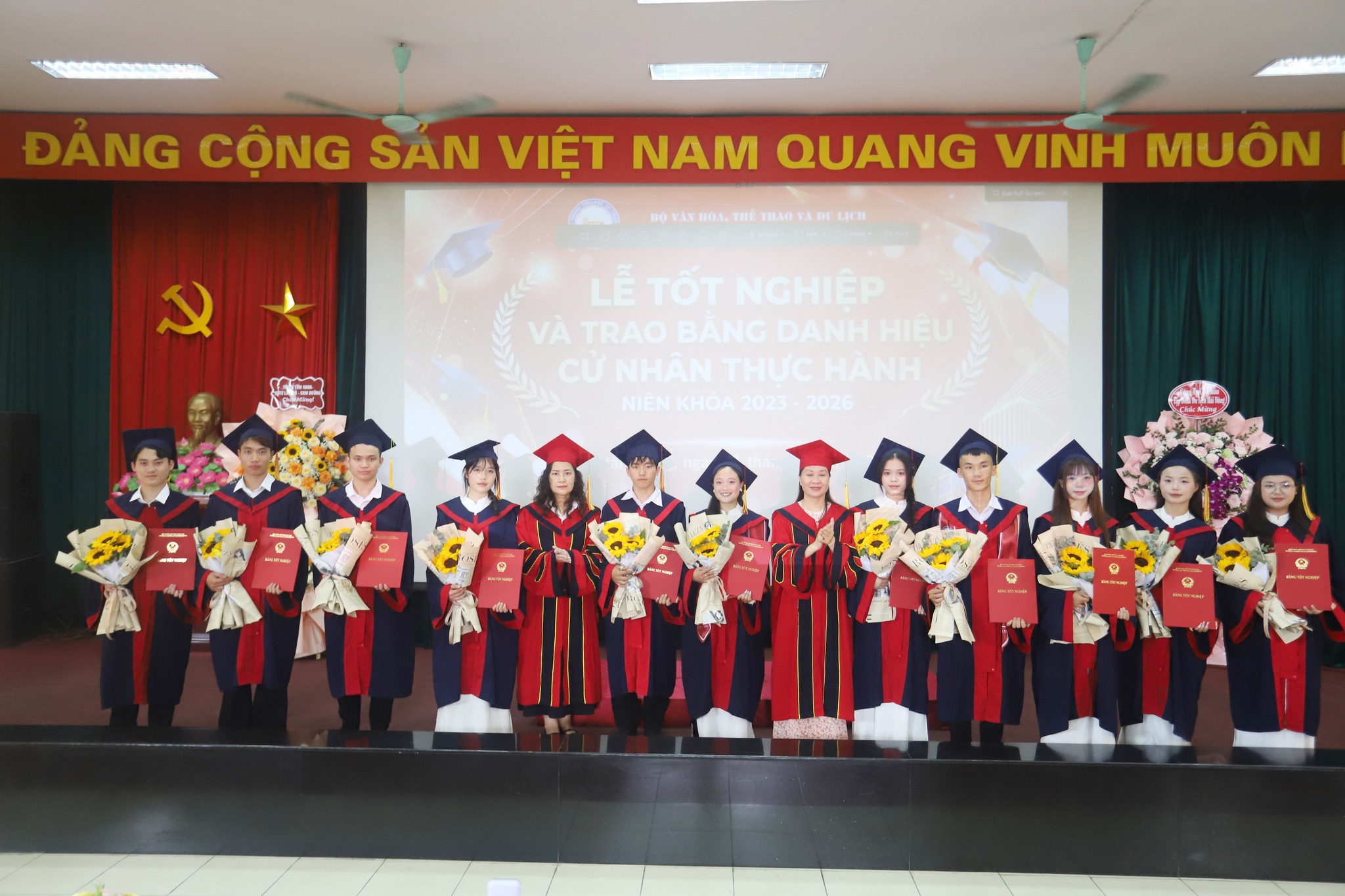 Nhà trường trao bằng tốt nghiệp cho các sinh viên thuộc 05 ngành nghề trong lĩnh vực du lịch – dịch vụ niên khoá 2024-2026 với kết quả tốt nghiệp đạt tỷ lệ trên 90% toàn khoá với 96% sinh viên đạt loại Khá trở lên, khẳng định chất lượng đào tạo ổn định, hiệu quả.