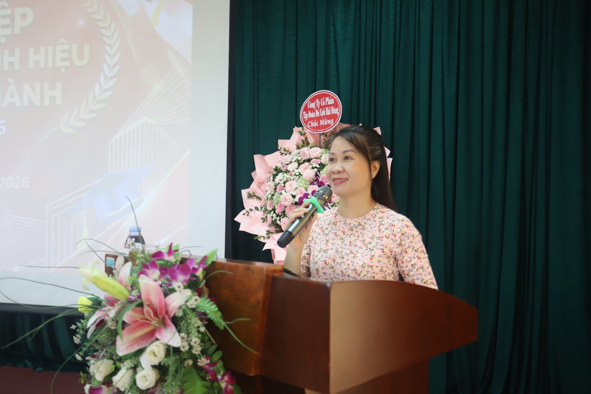 Phát biểu tại buổi lễ, cô Nguyễn Thị Hải Hoà, Phó Hiệu trưởng nhà trường nhấn mạnh “Lễ tốt nghiệp không phải là điểm kết thúc mà là sự khởi đầu cho một hành trình mới; bày tỏ tin tưởng, với những kiến thức, kỹ năng và trải nghiệm đã tích lũy, các em sẽ tự tin bước vào thị trường lao động, không ngừng học hỏi, thích ứng và khẳng định giá trị bản thân. Đồng thời, Cô cũng gửi gắm kỳ vọng các em luôn giữ vững tinh thần trách nhiệm, đạo đức nghề nghiệp và khát vọng vươn lên trong bối cảnh hội nhập quốc tế”.