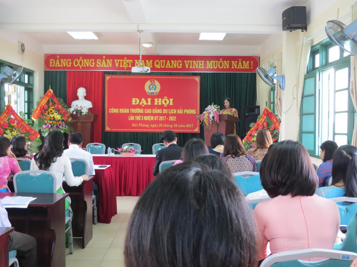 Sáng ngày 28/10/2017, được sự nhất trí của Chi bộ và Ban giám hiệu Nhà trường, Công đoàn Trường Cao đẳng du lịch Hải Phòng đã tiến hành tổ chức Đại hội toàn thể công đoàn cơ sở lần thứ 3 , nhiệm kỳ 2017 – 2022. Đại hội đã tổng kết, đánh giá và kiểm điểm các mặt hoạt động công đoàn giai đoạn lâm thời, bầu ra Ban Chấp hành công đoàn cho nhiệm kỳ mới, thông qua nghị quyết của Đại hội. Tham dự Đại hội có Ông Phạm Văn Long - Bí thư Đảng Bộ, Hiệu trưởng Nhà trường cùng các đồng chí trong Ban chấp hành Công đoàn giai đoạn lâm thời và toàn thể công đoàn viên trong trường. Trường còn vinh dự đón nhận sự tham dự của các đại biểu của công đoàn thành phố .