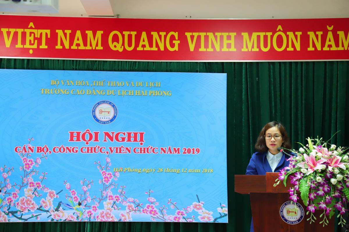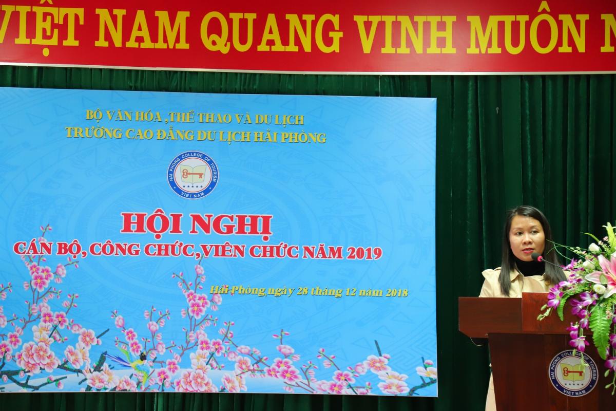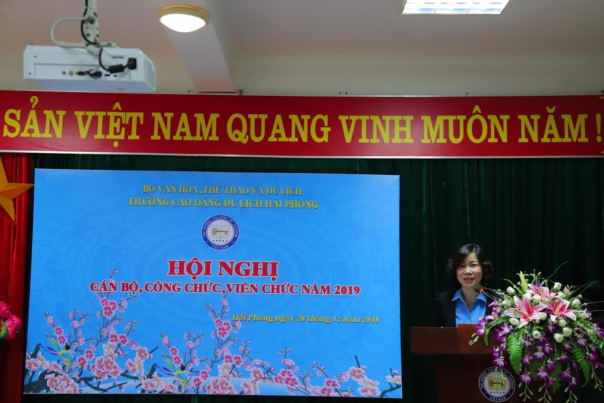 Chiều ngày 28 tháng 12 năm 2018, Trường Cao đẳng du lịch Hải Phòng đã long trọng tổ chức Hội nghị Cán bộ công chức viên chức (CBCCVC) năm 2019, với sự có mặt đông đủ của CBCCVC nhà trường. Hội nghị có ý nghĩa quan trọng, nhằm đánh giá và tổng kết những kết quả đã đạt được trong năm 2018 và đề ra phương hướng nhiệm vụ năm 2019.
