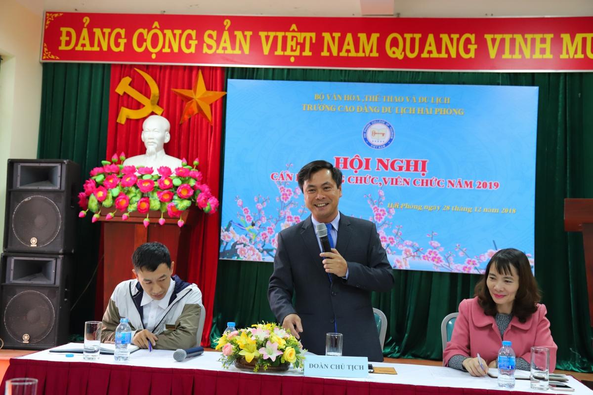 Ông Phạm Văn Long – Hiệu trưởng nhà trường thay mặt đoàn chủ tịch phát biểu, và có những trao đổi, xung quanh những vấn đề được cán bộ viên chức, công chức nhà trường quan tâm. Đại diện nhà trường đã chia sẻ những khó khăn và đánh giá cao sự cố gắng của tập thể cán bộ viên chức đã rất nỗ lực, cố gắng trọng mọi mặt hoạt động công tác của nhà trường năm 2018, đánh giá cao chất lượng của các tham luận đã trình bày tại hội nghị - Ông cho rằng những báo cáo viên đã chuẩn bị rất kỹ nội dung và thực tế đây đang là những vấn đề rất quan trọng đối với hoạt động đào tạo của Nhà trường. Bên cạnh đó người đứng đầu nhà trường đã chỉ ra những cơ hội và thách thức mới năm 2019.