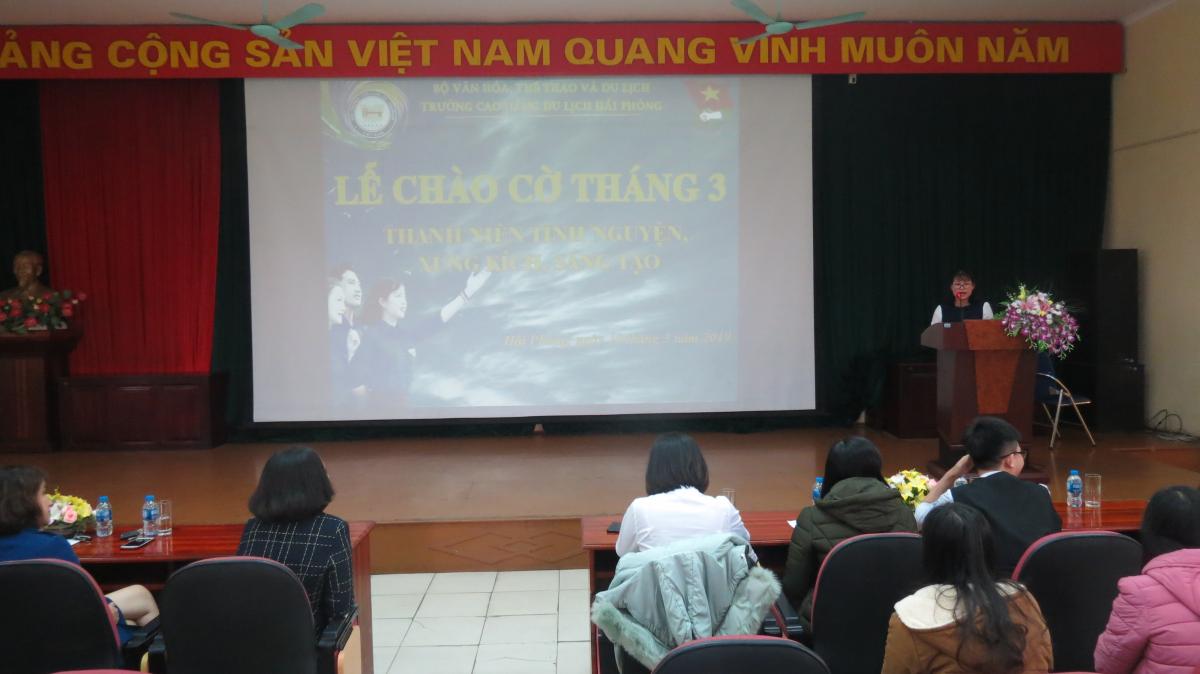 Sáng ngày 19/3/2019 Phòng Công tác học sinh sinh viên đã chủ trì tổ chức lễ chào cờ tháng 3 năm 2019. Tham dự lễ chào cờ có sự hiện diện của đại diện BGH nhà trường, Đoàn thanh niên, Phòng CTHSSV, đại diện Phòng Đào tạo và hợp tác quốc tế, các Thầy Cô và đông đảo học sinh sinh viên Nhà trường.