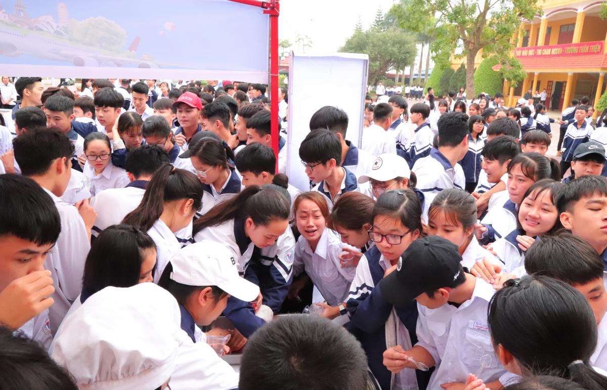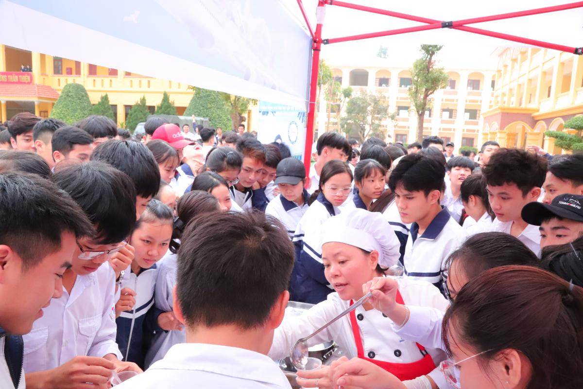 Chúng tôi có dịp trở lại đất học Vĩnh Bảo một ngày đầu xuân Kỷ Hợi 2019, trong tiết trời xuân với một chút mưa Bay nhẹ. Tiếp chúng tôi là thầy Hiệu trưởng còn rất trẻ, những trao đổi nhanh chóng vì chúng tôi đã có hẹn từ trước, gian hàng trải nghiệm nhanh chóng được dựng lên, sân trường yên ắng lúc này vẫn đang trong giờ học. Chúng tôi gấp rút chuẩn bị mọi thứ. Công việc hôm nay nhanh hơn vì có góp sức của hai nhân vật đặc biệt mấy bạn đi cùng vẫn gọi vui - hai bạn Tây. Thực tế họ là những tình nguyện viên nhưng sự tò mò và bản tính tuổi trẻ đã kéo họ đến đây. Thế là cũng xong , vừa vặn tiếng chuông báo hết giờ vang lên, sân trường chợt sôi động, đã có rất đông các bạn hiếu kỳ ngó nghiêng trước gian hàng. Gọi là gian hàng cho oách chứ thực ra chúng tôi chẳng có gì để bán. Mc bệ vệ thầy Dũng bắt đầu giới thiệu, tiếng ồ lên tán thưởng, tiếng vỗ tay, các bạn trẻ đã hiểu rõ lý do chúng tôi ở đây… các gian hàng chật cứng và rồi ai đó phải giãn ra dành chút không gian cho trải nghiệm. Tôi cũng không rõ lắm trải nghiệm là gì…cậu bạn bên cạnh nhắc nhỏ đại loại là cái có được sau thực tế tự mình trải qua…ừ có lý..chiếc bánh crepe đầu tiên ra đời trong nỗ lực tách chiếc bánh khỏi cái chảo nóng của một bạn học sinh… sự hồi hộp… ù tuyệt…hẳn nhiên tuyệt rồi vì đó là tâm sức nãy giờ còn gì…