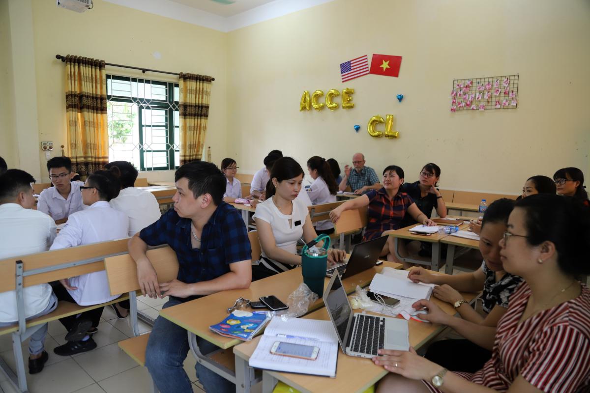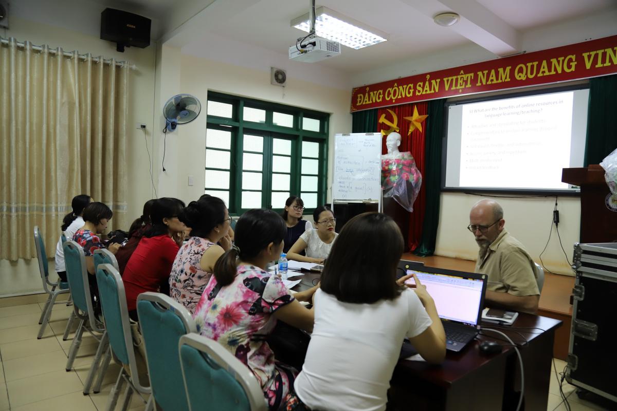 Với mục đích giúp các giảng viên cải thiện phương pháp giảng dạy môn tiếng Anh, trong 3 ngày làm việc, chuyên gia cùng các giảng viên đã thảo luận và rà soát chương trình tiếng Anh chuyên ngành, hỗ trợ giáo viên lựa chọn tài liệu, giáo cụ giảng dạy phù hợp.