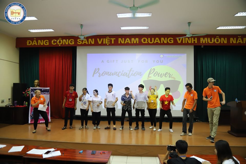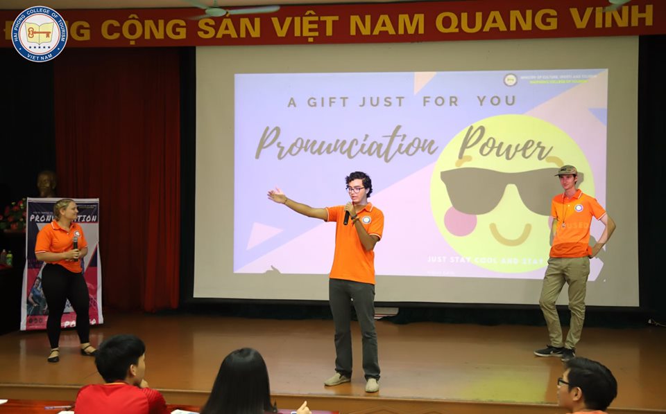 Đây là chương trình phối hợp của các thầy cô và các bạn Tình Nguyện Viên nước ngoài đang tham gia hoạt động giảng dạy tại trường, với mong muốn giúp các bạn sinh viên trẻ, nhiệt tình, năng động có thể có những thông tin cơ bản, ban đầu và chính xác nhất về cách phát âm trong tiếng Anh. Ngoài ra, các bạn còn được chỉnh sửa những lỗi phát âm sai mà mình thường mắc phải trong suốt quá trình làm quen với tiếng Anh từ trước đến giờ nữa đấy.