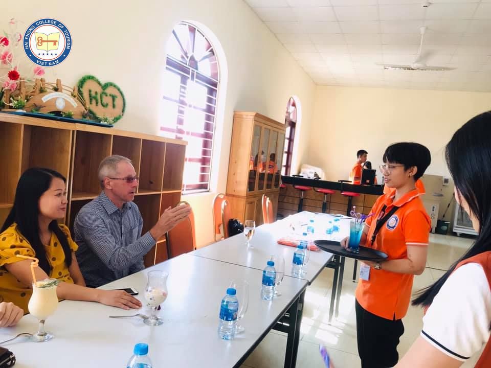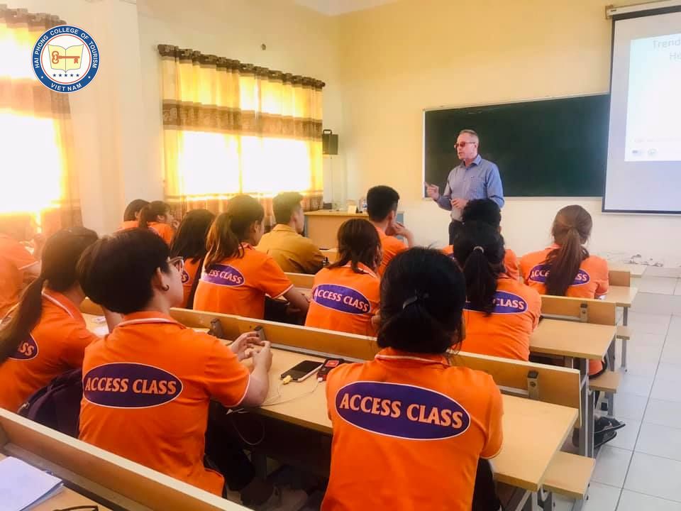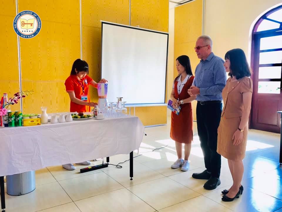 Sáng nay ngày 21/10/2019 trường CĐ Du Lịch Hải Phòng vui mừng được đón tiếp chuyên gia của Đại Sứ Quán Mỹ Mr. John Niblett cùng tham gia hoạt động trải nghiệm pha chế đồ uống trong lớp học Access (tổ chức hoạt động phát triển bản thân Enhancement Activity).