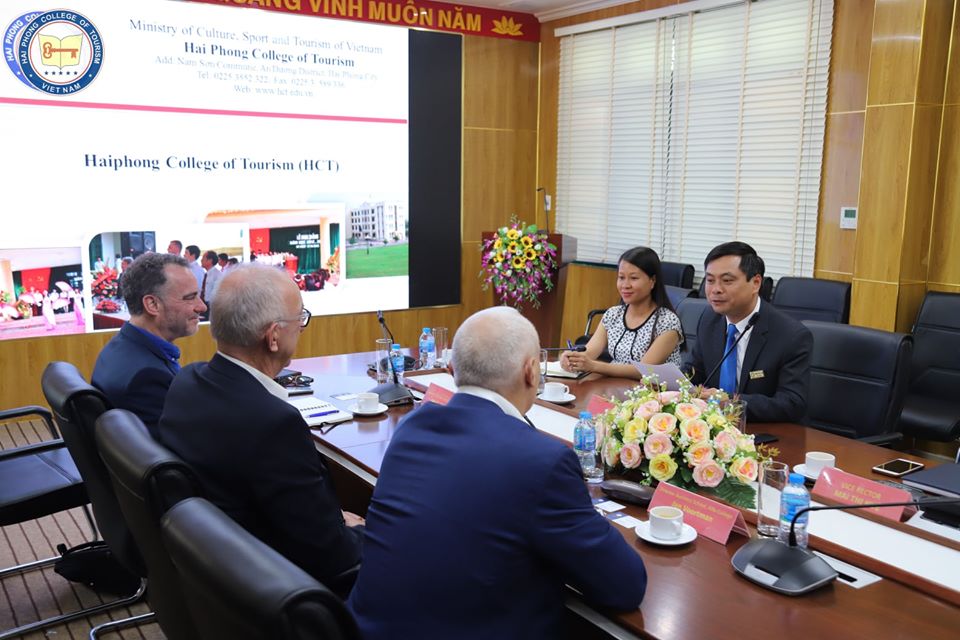 Ngày 05/11/2019 trường Cao Đẳng Du lịch Hải Phòng (HCT) rất hân hạnh được đón tiếp ba chuyên gia đến từ Hà Lan: ông Mark Kierans – Giảng viên cao cấp của Đại học Khoa học ứng dụng Hanze; ông Jan Berend van der Wijk – Giám đốc vùng Kinh doanh và ông Jan Voortman – Giám đốc Kinh doanh của trường Cao đẳng Alfa. Phiên làm việc thứ nhất là chương trình  gặp mặt của Ban giám hiệu nhà trường, Phòng Đào tạo, QLKH và HTQT với các chuyên gia; Phiên làm việc thứ 2: Chuyên gia giao lưu với cán bộ giảng viên và sinh viên nhà trường về hành trình nghề nghiệp, tư tưởng dịch vụ, chăm sóc khách hàng của nhân sự làm trong ngành Du lịch.