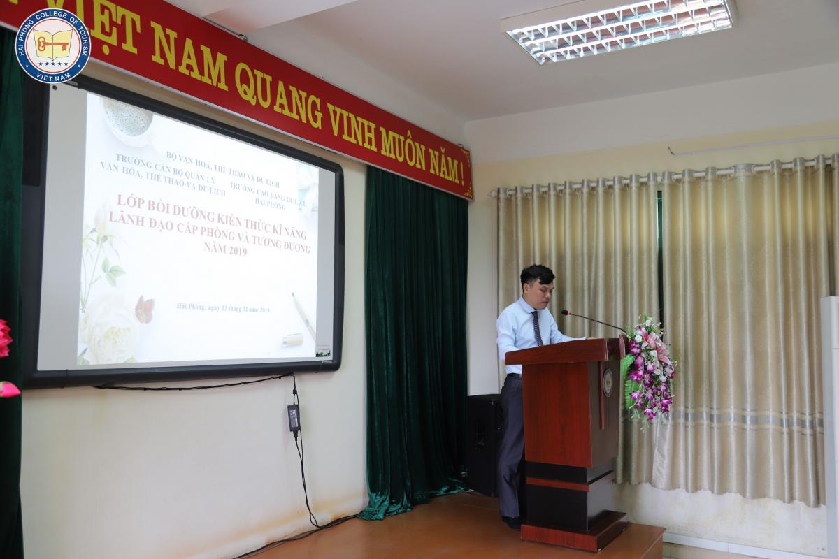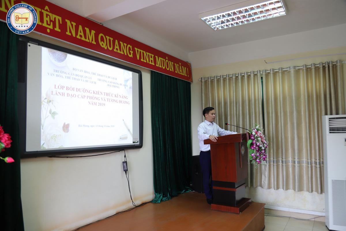 Nhận thức rõ vai trò và tầm quan trọng trong công tác đào tạo, bồi dưỡng nguồn nhân lực, sáng ngày 13/11/2019 Trường Cao Đẳng Du Lịch Hải Phòng tổ chức Lễ khai giảng lớp bồi dưỡng kiến thức, kỹ năng lãnh đạo cấp Phòng và tương đương năm 2019 nhằm nâng cao nhận thức chính trị, năng lực công tác, trình độ chuyên môn, nghiệp vụ cho đội ngũ cán bộ là lãnh đạo quản lý cấp Phòng và tương đương; viên chức thuộc diện quy hoạch chức vụ lãnh đạo, quản lý cấp Phòng đang công tác tại trường đáp ứng tiêu chuẩn, điều kiện và các tiêu chí đặt ra trong thời kỳ CNH-HĐH đất nước.