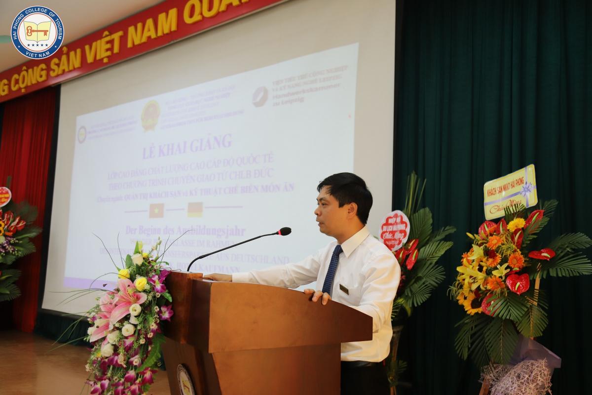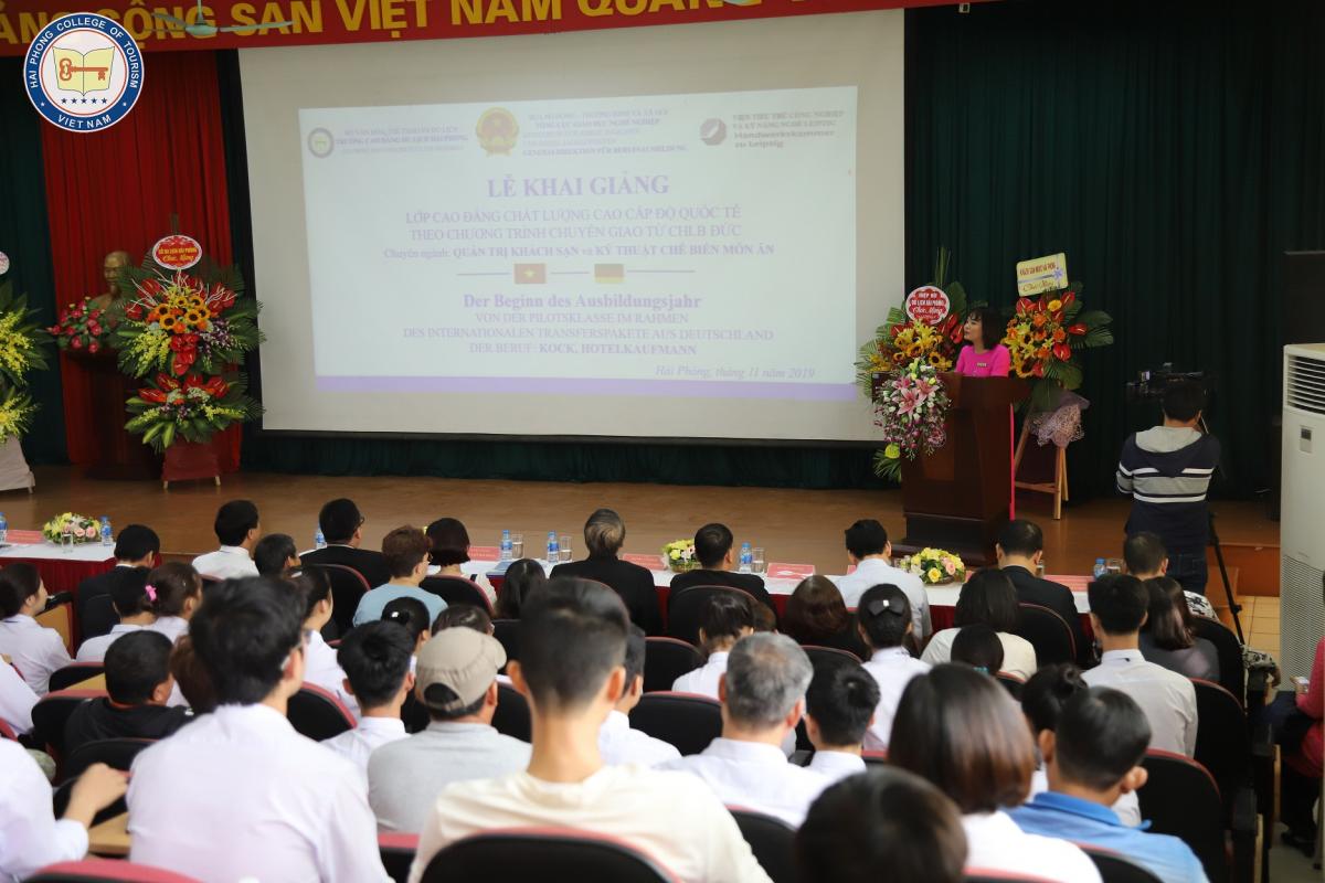 Phát biểu tại lễ khai giảng khóa học, Thầy Phạm Văn Long – Bí thư Đảng ủy, Hiệu trưởng nhà trường nhấn mạnh Trường Cao đẳng Du lịch Hải Phòng là 1 trong 45 trường trên toàn quốc có đủ điều kiện đào tạo chương trình chuyển giao cấp độ Quốc tế. Ngày 30/8/2019, trước sự chứng kiến của lãnh đạo tổng cục giáo dục nghề nghiệp, đại diện của tập đoàn đào tạo AVESTOS Đức, nhà trường vinh dự được công nhận là trung tâm nghề nghiệp theo tiêu chuẩn Đức và giấy chứng nhận Kiểm định chất lượng trường đào tạo đủ điều kiện theo luật giáo dục nghề nghiệp CHLB Đức đào tạo với 2 chuyên ngành Quản trị Khách sạn và Kỹ thuật Chế biến món ăn.