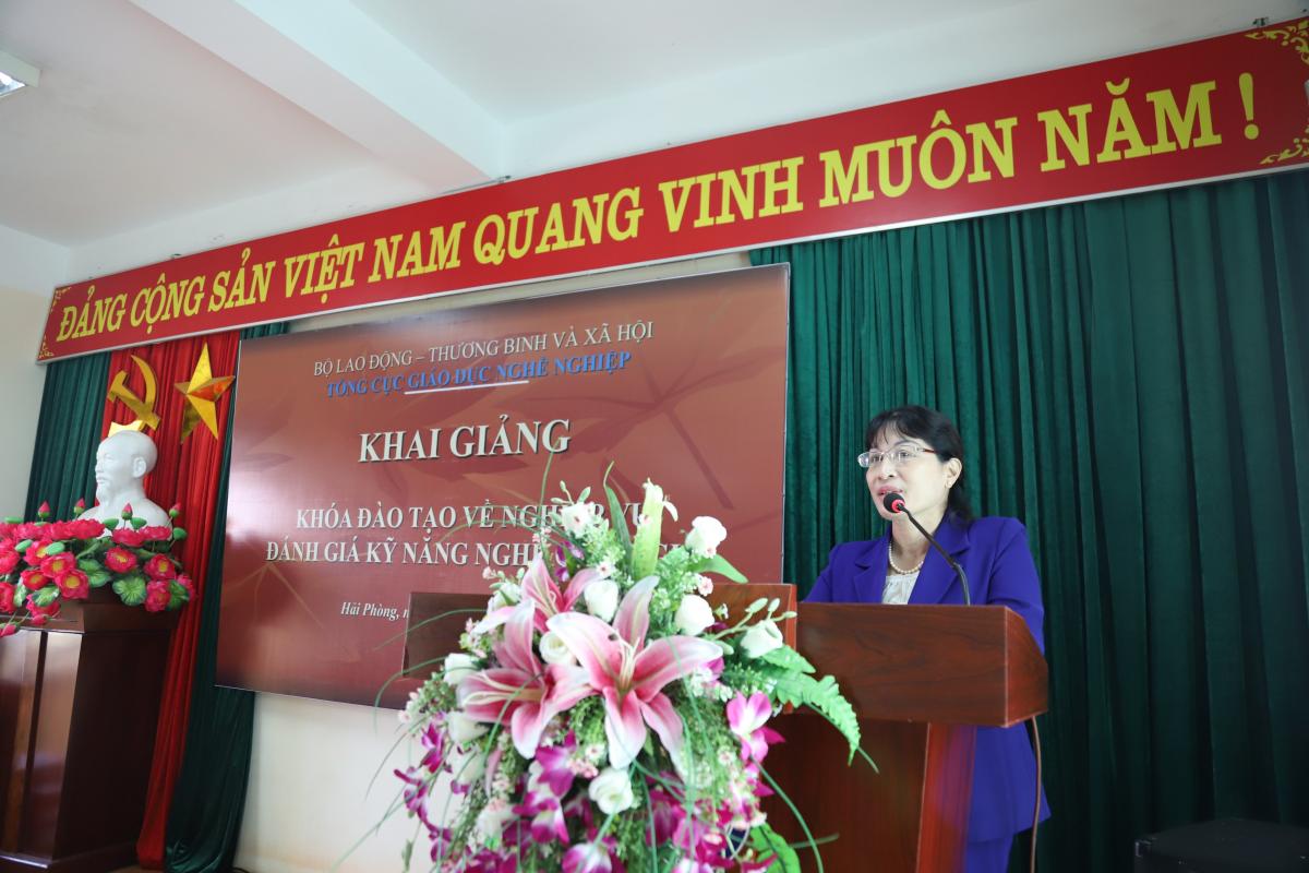 Phát biểu tại lễ khai giảng, bà Nguyễn Thị Tâm - Phó Giám đốc Sở LĐ,TB&XH thành phố Hải Phòng cho rằng khóa đào tạo này sẽ góp phần phát triển nguồn nhân lực để mở rộng quy mô và phát triển hệ thống đánh giá, cấp chứng chỉ kỹ năng nghề quốc gia, đồng thời cũng bồi dưỡng, nâng cao năng lực cho các học viên tham gia khóa đào tạo.