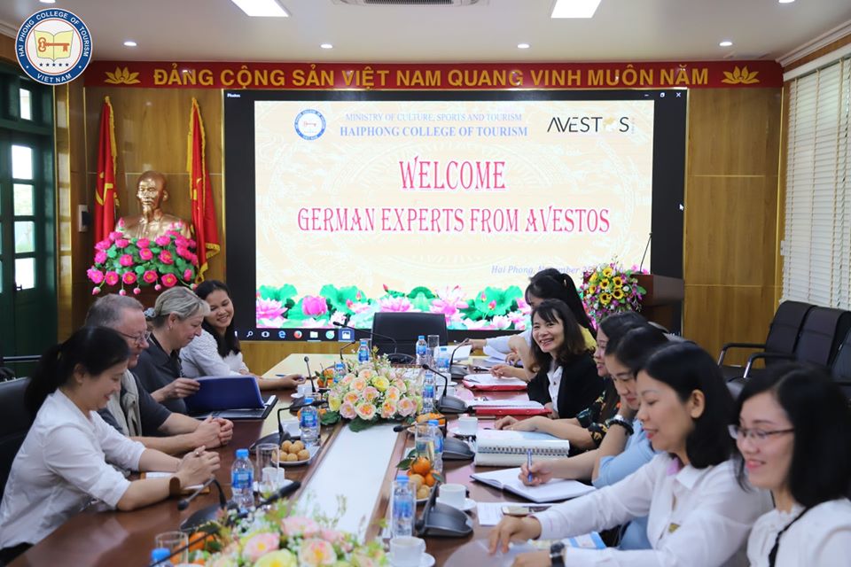 Sáng nay ngày 25/11/2019, Trường Cao Đẳng Du Lịch Hải Phòng rất vui mừng được đón tiếp 2 chuyên gia đến từ tập đoàn đào tạo AVESTOS - CHLB Đức: Mr. Marius Weber và Mrs. Ines Klimek.