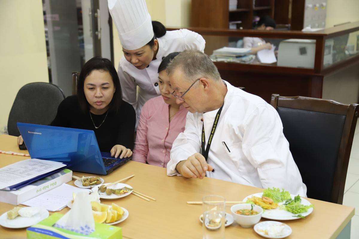 Mr.Marius Weber và các giảng viên chuyên môn Khoa Quản trị chế biến món ăn dự giờ lớp Quốc tế chuyên ngành Chế biến món ăn