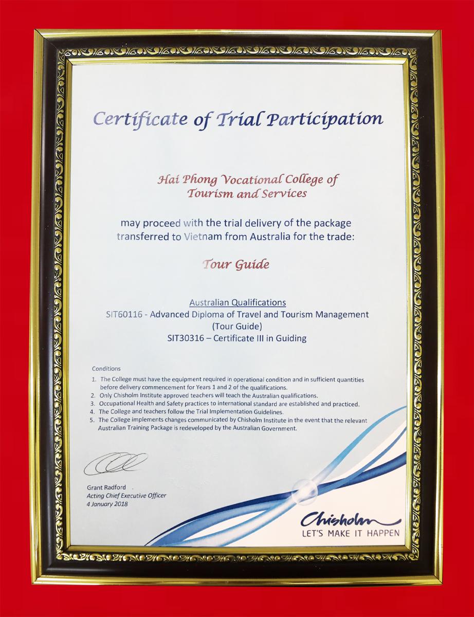 Chứng nhận chuyển giao chương trình đào tạo cấp độ quốc tế nghề Hướng dẫn Du lịch theo chương trình đào tạo của Australia