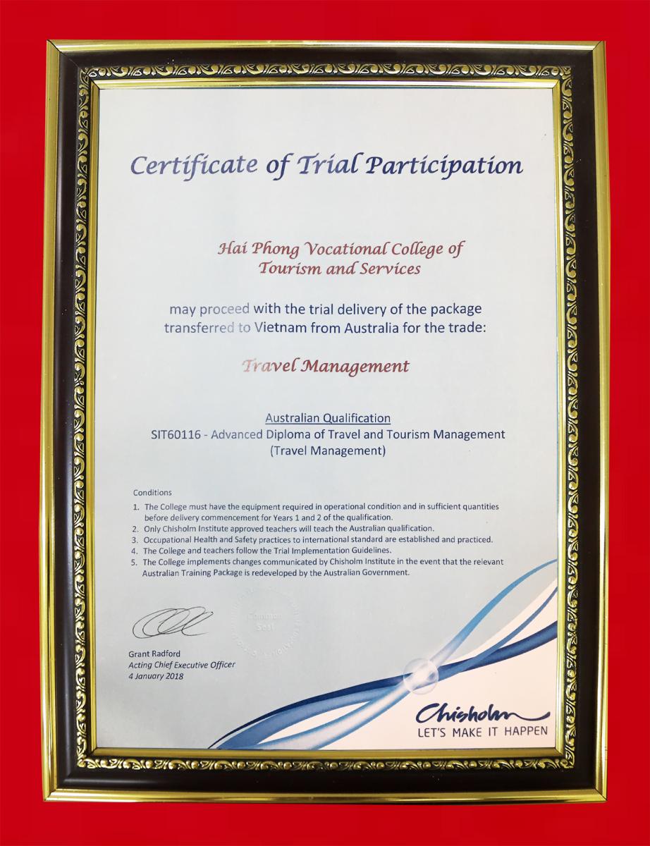Chứng nhận chuyển giao chương trình đào tạo cấp độ quốc tế nghề Quản trị lữ hành theo chương trình đào tạo của Australia