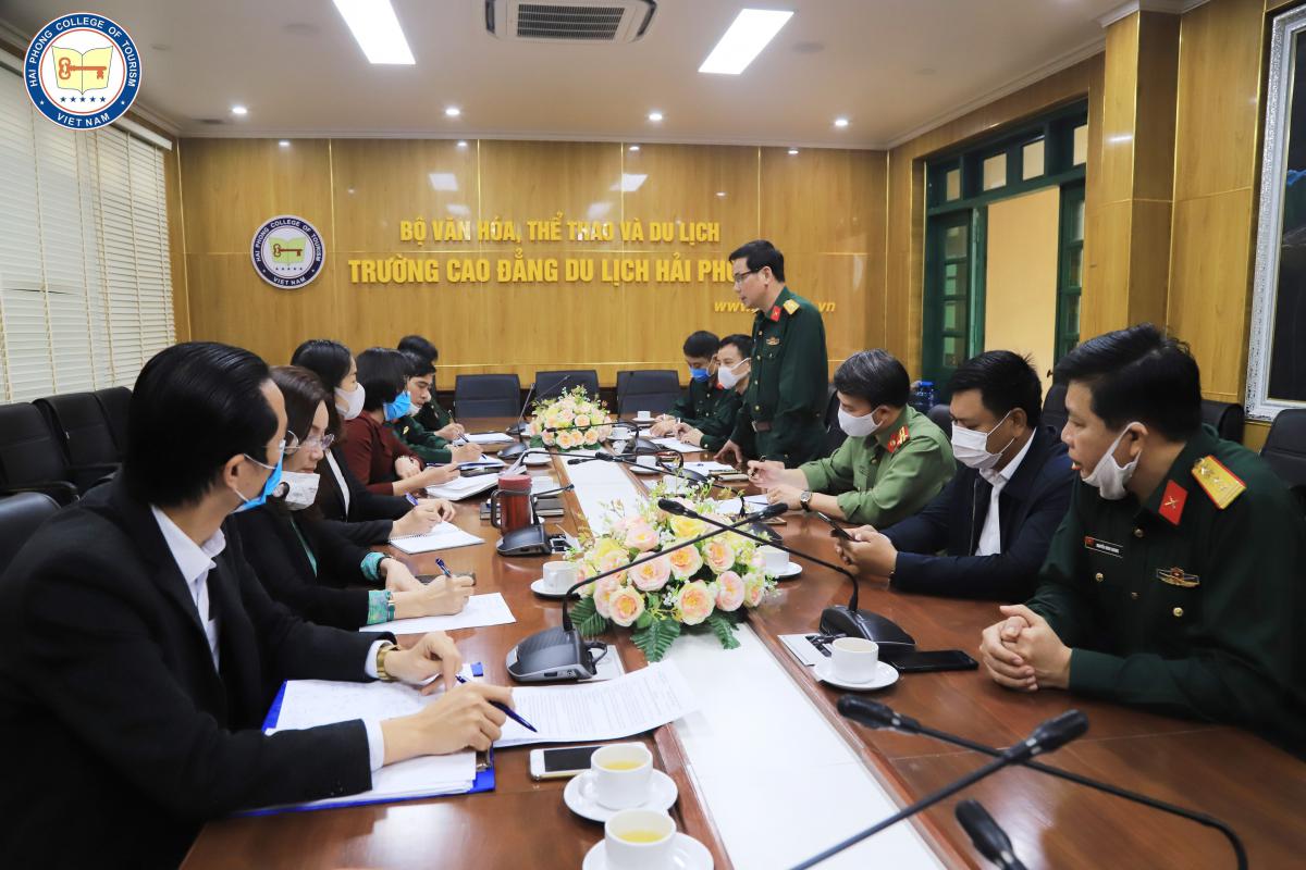 Ban lãnh đạo Trường Cao đẳng Du lịch Hải Phòng làm việc với Sở Y tế, Ban Chỉ huy Quân sự, Công an thành phố Hải Phòng khẩn trương triển khai công tác đón công dân Việt Nam từ nước ngoài về cách ly tại khu ký túc xá sinh viên của trường