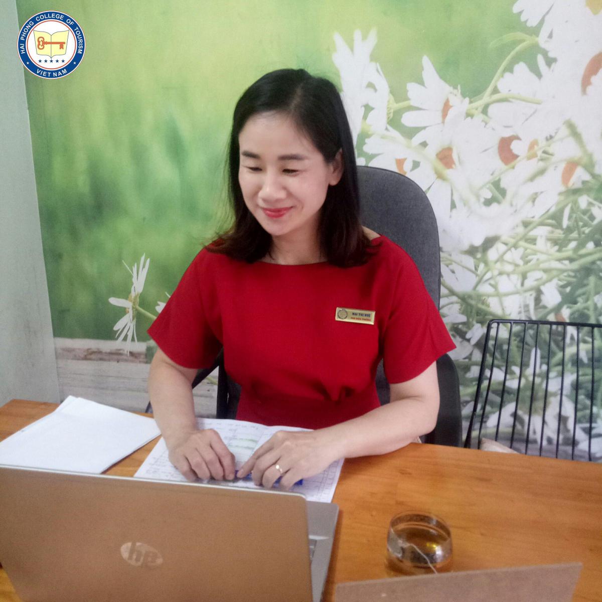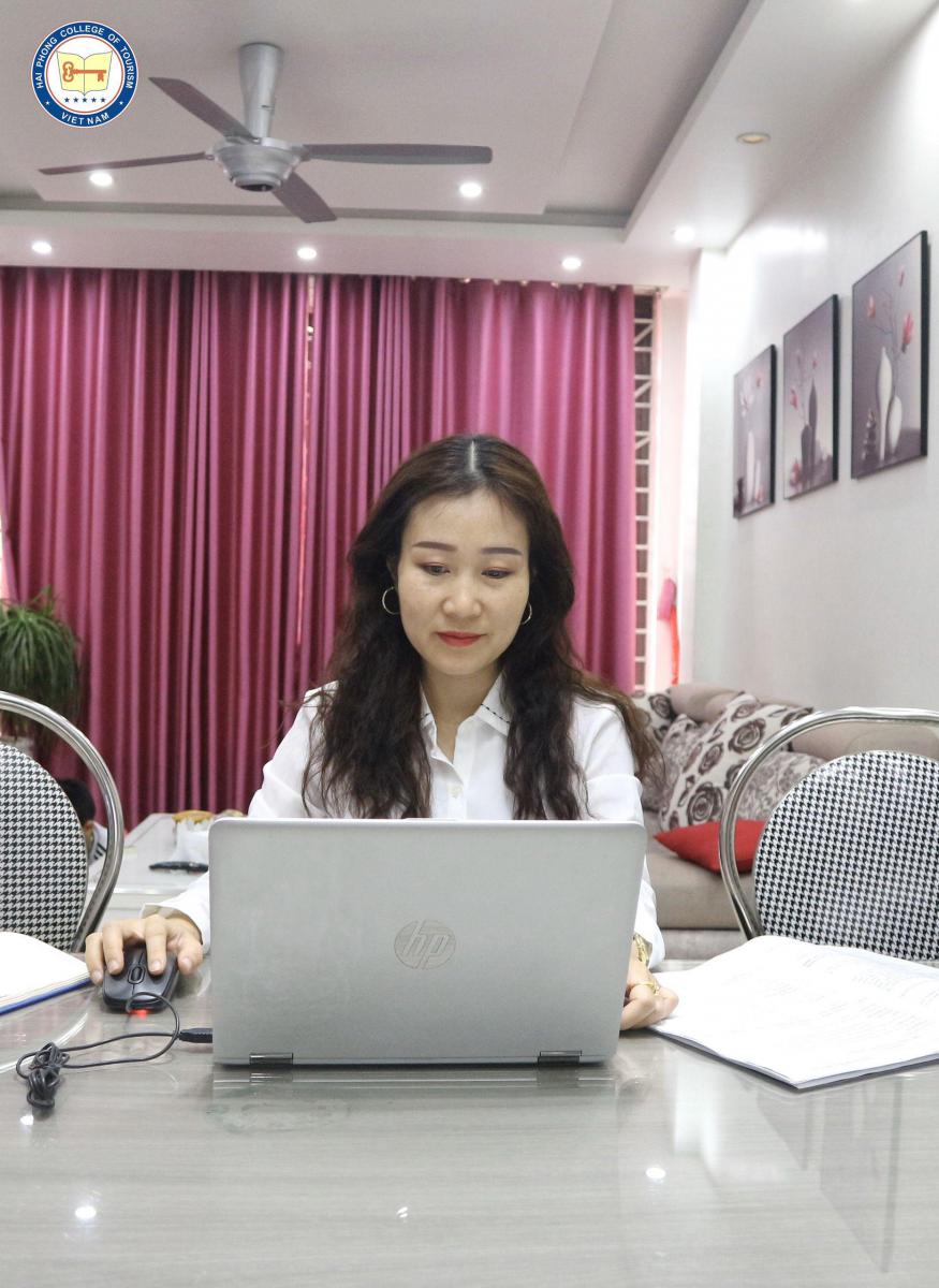 Cô Mai Thị Huệ - Phó Hiệu trưởng Trường Cao đẳng Du lịch Hải Phòng gặp gỡ sinh viên qua kênh trực tuyến