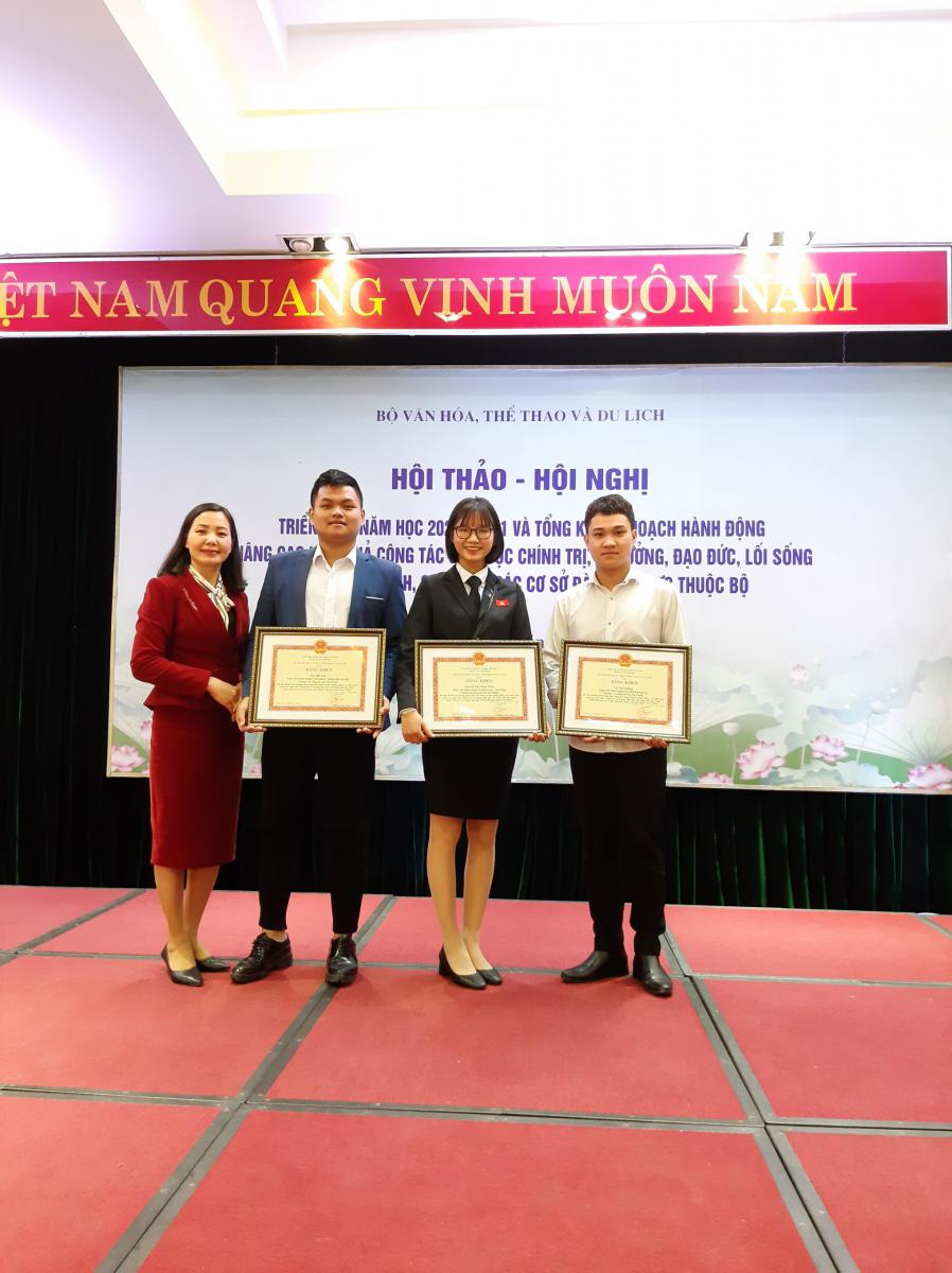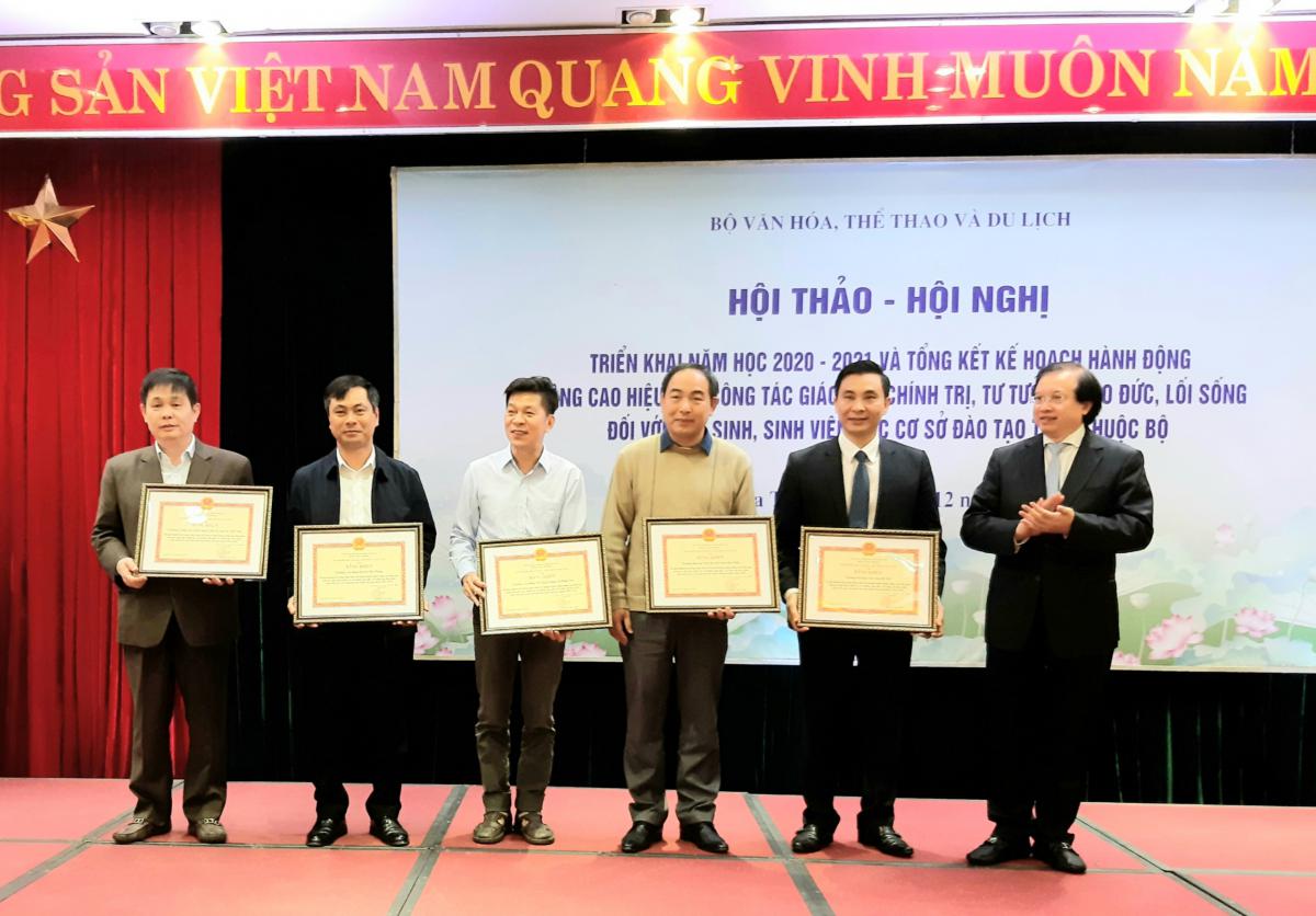 Tại hội nghị tôn vinh 6 đơn vị vinh dự được đón nhận bằng khen cho tập thể và 44 HSSV các cơ sở đào tạo trực thuộc Bộ vinh dự được đón nhận bằng khen của Bộ trưởng Bộ VHTTDL.