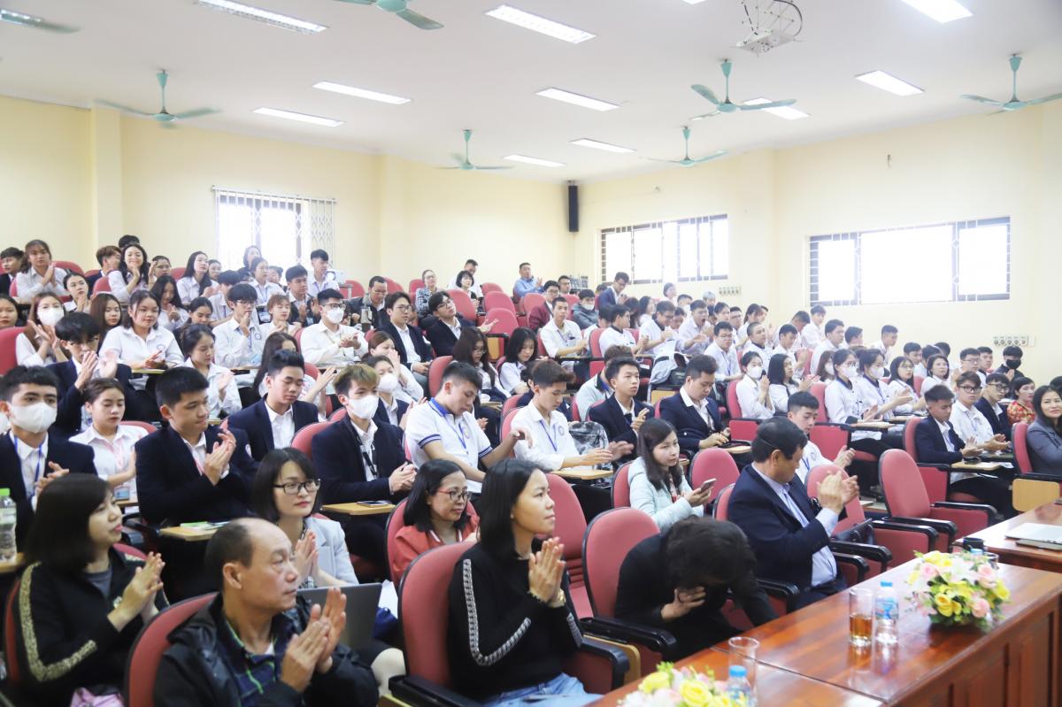 Tham dự chương trình Tọa đàm có đại diện BGH Nhà trường Ts. Phạm Văn Long- Bí thư Đảng ủy, Hiệu trưởng; các thầy cô giáo, cán bộ công nhân viên, cùng hàng trăm sinh viên Nhà trường.