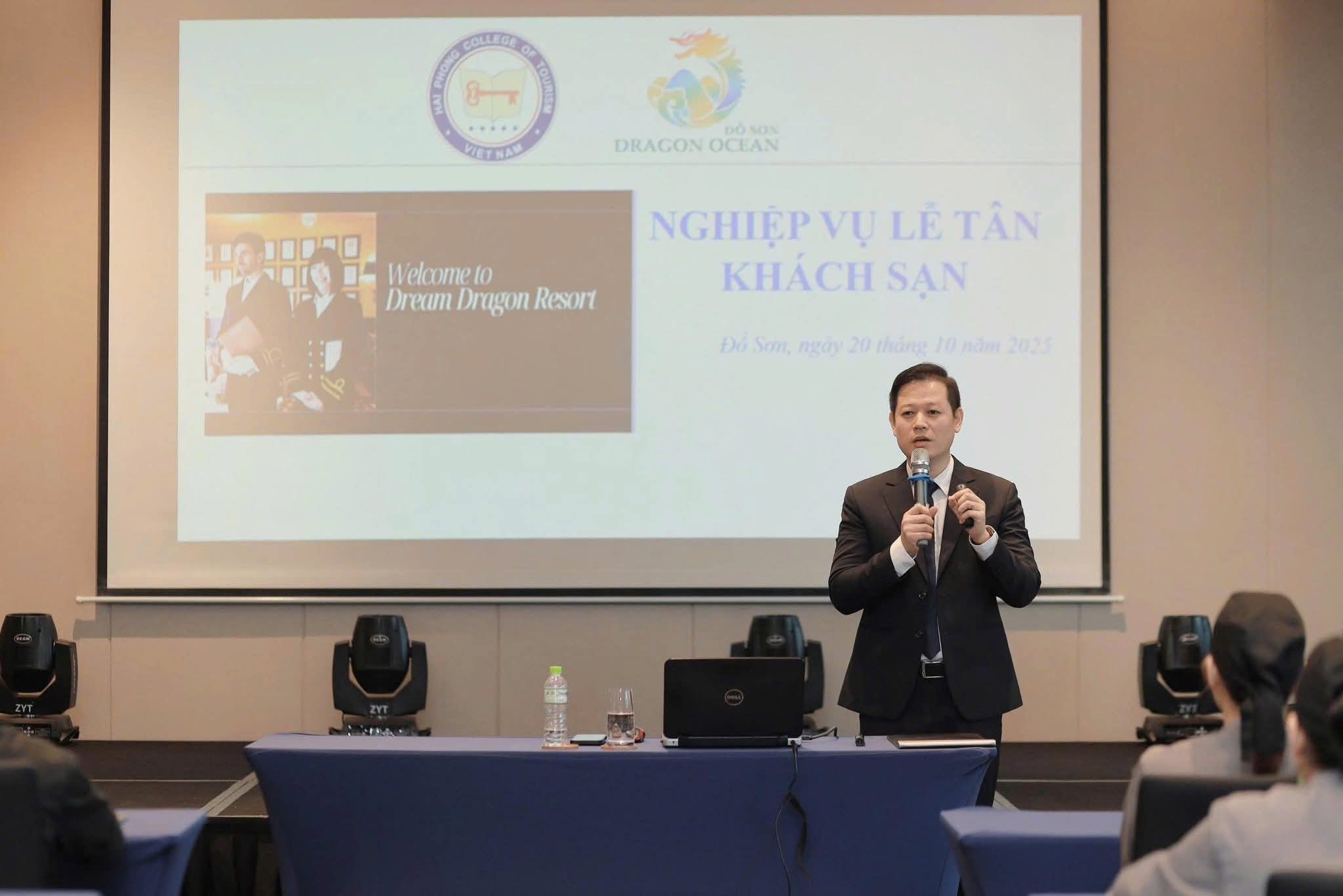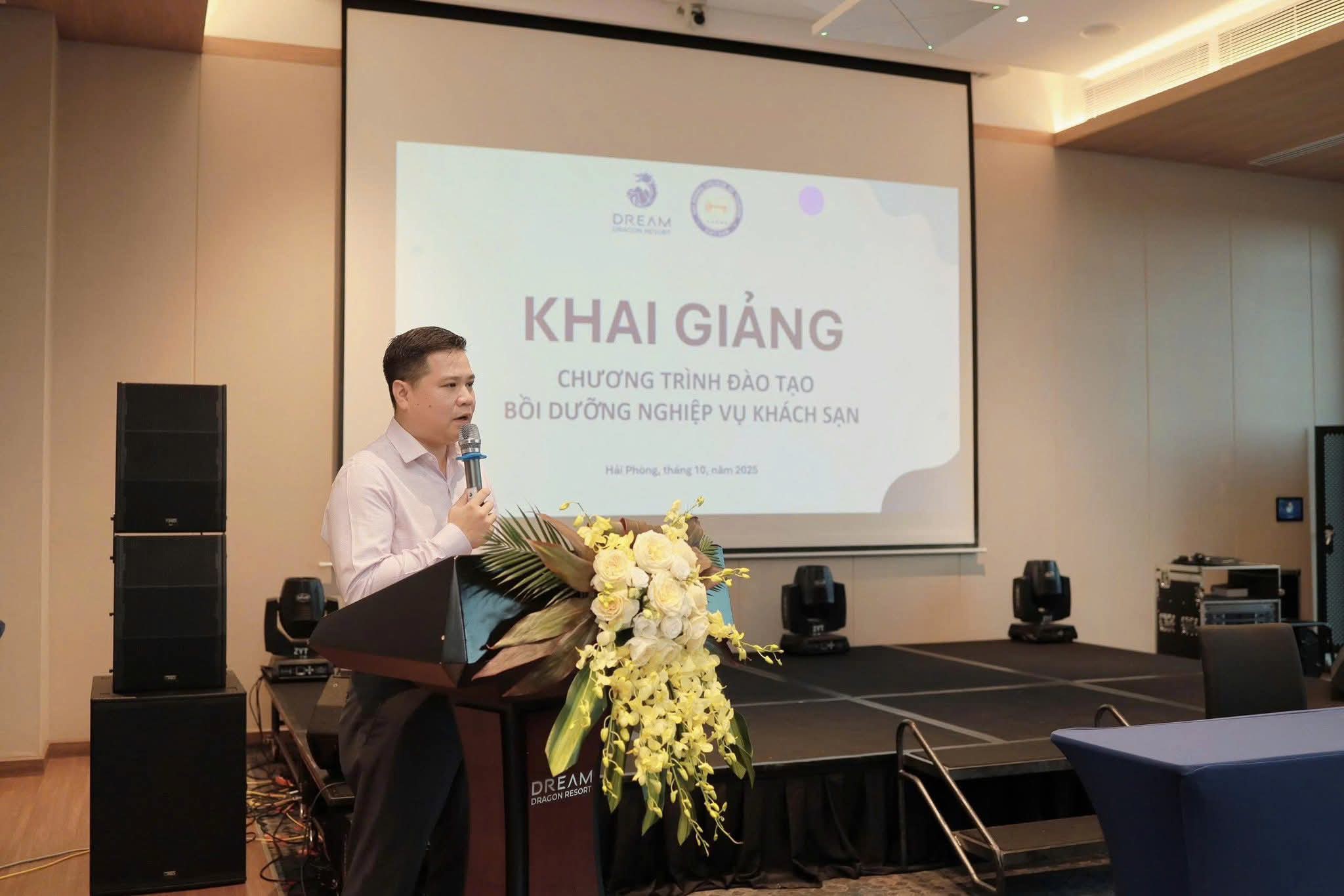 Sáng ngày 20/10/2025, tại Khu du lịch quốc tế Đồi Rồng, Đồ Sơn- Công ty Cổ phần đầu tư và du lịch Vạn Hương và Trường Cao đẳng Du lịch Hải Phòng (HCT) phối hợp long trọng tổ chức Lễ khai giảng “Khóa đào tạo Nghiệp vụ khách sạn” dành cho đội ngũ nhân sự của Khách sạn Dream Dragon Resort.