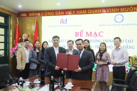 Từ ngày 14/11/2023 – đến 18/11/2023 đoàn khảo sát đánh giá CTĐT nghề Quản trị khách sạn tại trường Cao đẳng Du lịch Hải Phòng chính thức khai mạc và tiến hành đánh giá. Theo quyết định của Viện Đào tạo và phát triển nhân lực, thành viên đoàn khảo sát gồm: GS. TS Đỗ Đức Lưu - Trưởng đoàn đánh giá ngoài, ông Vũ Hữu Tín - Thư ký đoàn, ông Trần Ngọc Huân - Ủy viên đoàn.