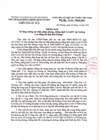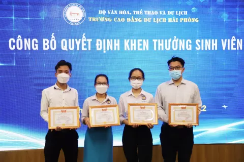 Với tinh thần biểu dương, khen thưởng và tạo động lực thúc đẩy sự rèn luyện, phấn đấu của học sinh, sinh viên trong toàn trường, ngày 13/01/2022 Trường Cao đẳng Du lịch Hải Phòng đã tổ chức công bố quyết định khen thưởng cho 04 sinh viên 02 lớp Cao đẳng quản trị khách sạn quốc tế và Cao đẳng kỹ thuật chế biến món ăn quốc tế.