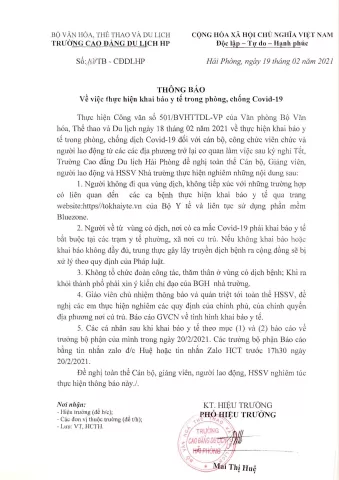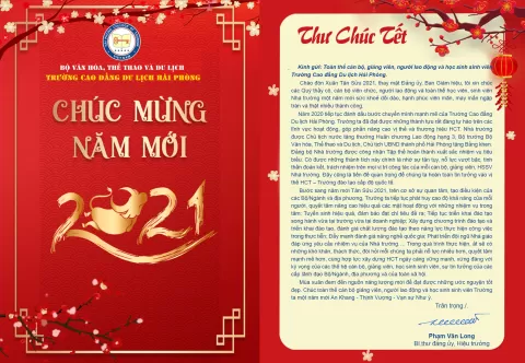 Thư chúc tết của Hiệu trưởng gửi đến toàn bộ cán bộ, giảng viên, người lao động và học sinh sinh viên Trường Cao Đẳng Du Lịch Hải Phòng nhân dịp xuân Tân sửu 2021.