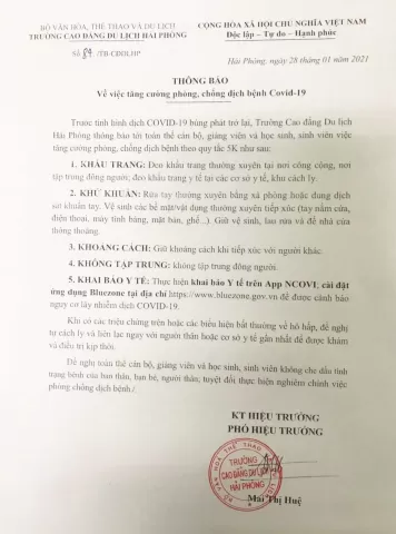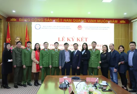 Sáng 22/01/2021 Trường Cao đẳng Du lịch Hải Phòng phối hợp với Ủy ban nhân dân xã Nam Sơn tổ chức kí kết quy chế phối hợp đảm bảo an ninh trật tự. Hai bên thảo luận và thống nhất thực hiện một số nội dung đảm bảo ANTT: