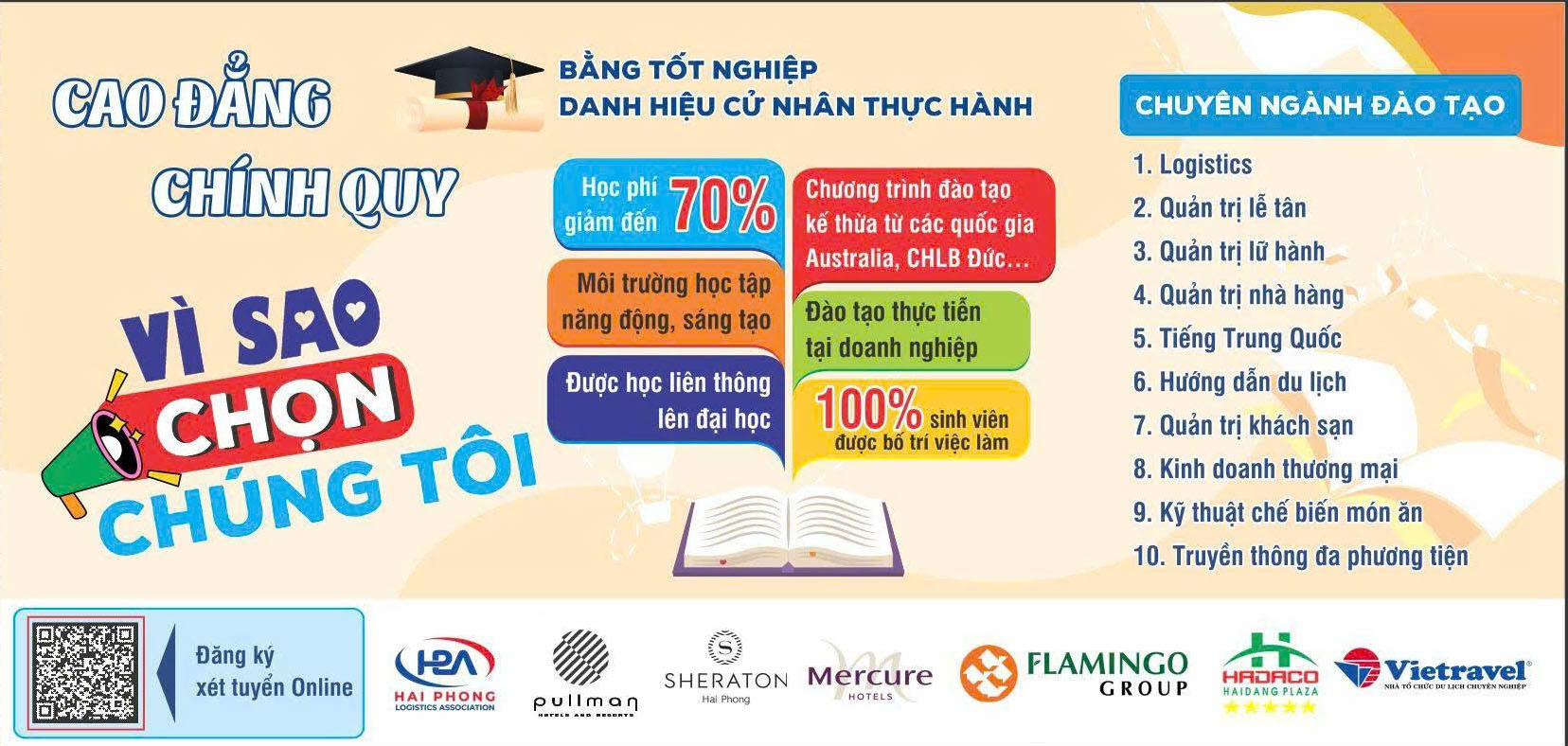 - Hoặc có thể nhận hồ sơ trực tiếp tại trường theo Địa chỉ: Trung tâm truyền thông - Tư vấn hướng nghiệp trường Cao đẳng Du lịch Hải Phòng (Km88 Quốc lộ 5 mới, Phường An Dương – TP Hải Phòng (Gần ngã tư Long Thành)).