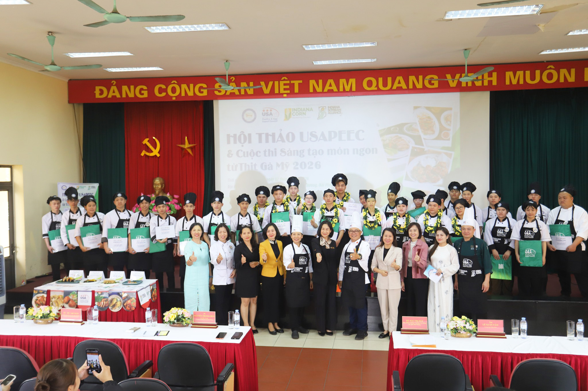 Ngày 12/03/2026, Trường Cao đẳng Du lịch Hải Phòng (HCT) đã tổ chức đã tổ chức cuộc thi “Sáng tạo món ăn từ Thịt Gà Mỹ 2026” với sự tham gia của 15 đội thi là HSSV đến từ chuyên ngành Kỹ thuật chế biến món ăn. Chương trình được triển khai với sự phối hợp của tổ chức Hiệp hội xuất khẩu Gia cầm & Trứng Hoa Kỳ - USAPEEC (U.S. Poultry & Egg Export Council) góp phần tạo nên một sân chơi chuyên môn mang tính thực tiễn cao và gắn liền với tiêu chuẩn quốc tế.