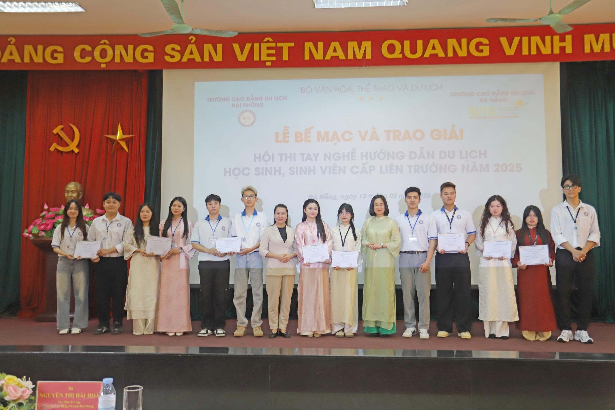 Toàn cảnh Lễ Bế mạc và Trao giải Hội thi Tay nghề Hướng dẫn Du lịch HSSV cấp liên trường 2025
