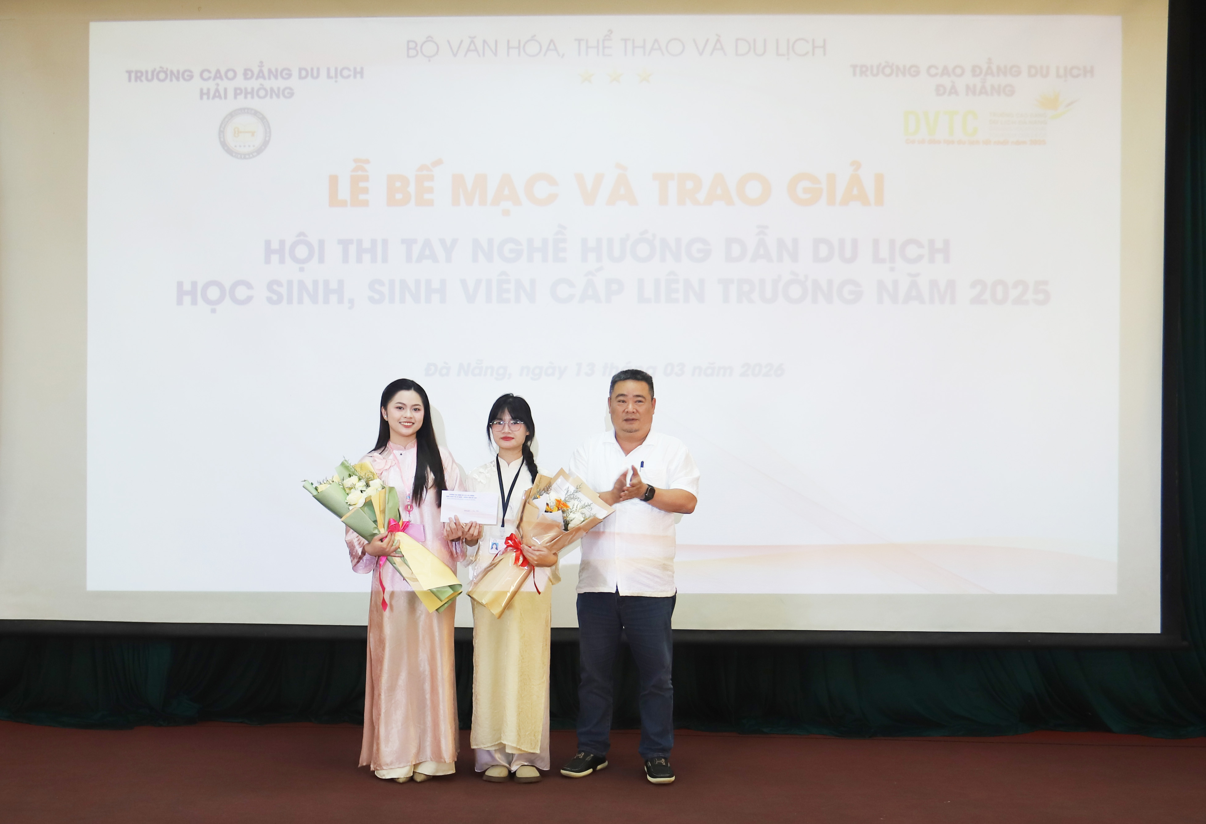 Lễ bế mạc và trao giải Hội thi Tay nghề Hướng dẫn du lịch học sinh, sinh viên (HSSV) cấp liên trường cao đẳng Du lịch trực thuộc Bộ Văn hoá, Thể thao và Du lịch năm 2025 đã diễn ra thành công tốt đẹp, khép lại một hành trình tranh tài sôi nổi, chuyên nghiệp và đầy cảm hứng. Chương trình được tổ chức theo hình thức trực tuyến tại 5 điểm cầu: Hải Phòng – Đà Nẵng – Huế – Nha trang – Cần Thơ, thu hút sự tham gia của đông đảo HSSV ngành du lịch trên cả nước.